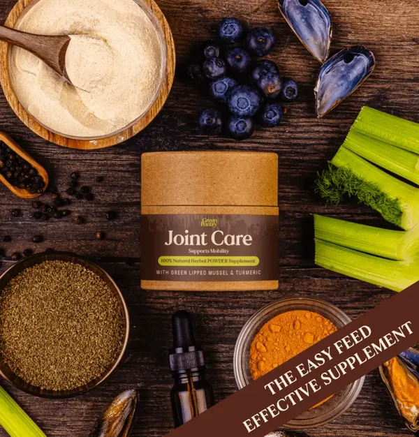 Composition: Hydrolysed Liver (Palatant) (30%), Boswellia Serrata Sap (14.5%), Fennel (14.5%), Green Lipped Mussel (13%), Stinging Nettle Leaf Powder (11%), Turmeric (11%), Celery Seed (3.5%), Blueberry Powder (3%), Black Pepper (0.04%).